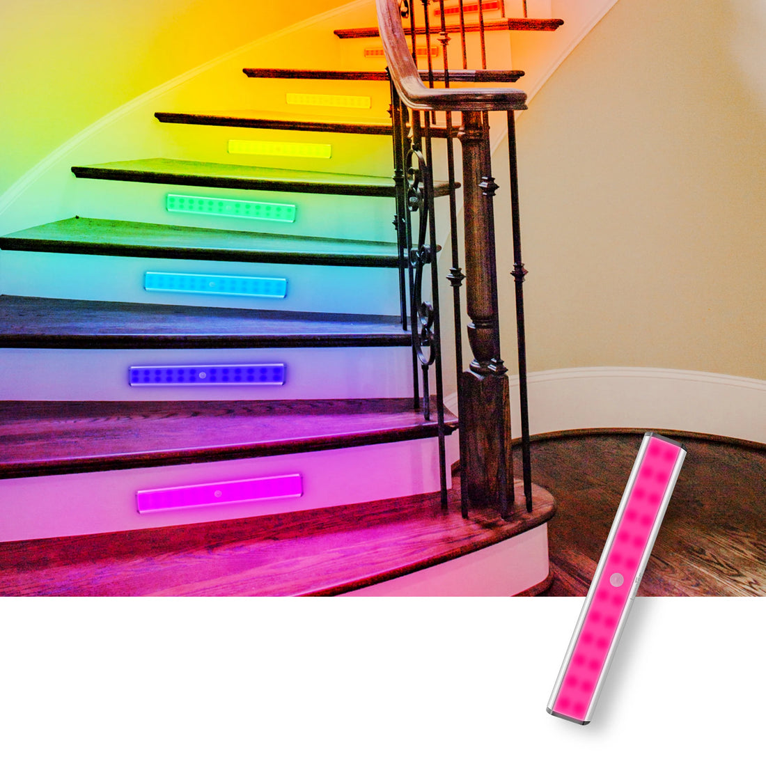 Under Cabinet Lighting – Lepotec 24LED RGB Wireless Motion Sensor Light, Rechargeable Cabinet & Night Light for Kitchen, Bedroom, Hotel, Bar, and Game Room