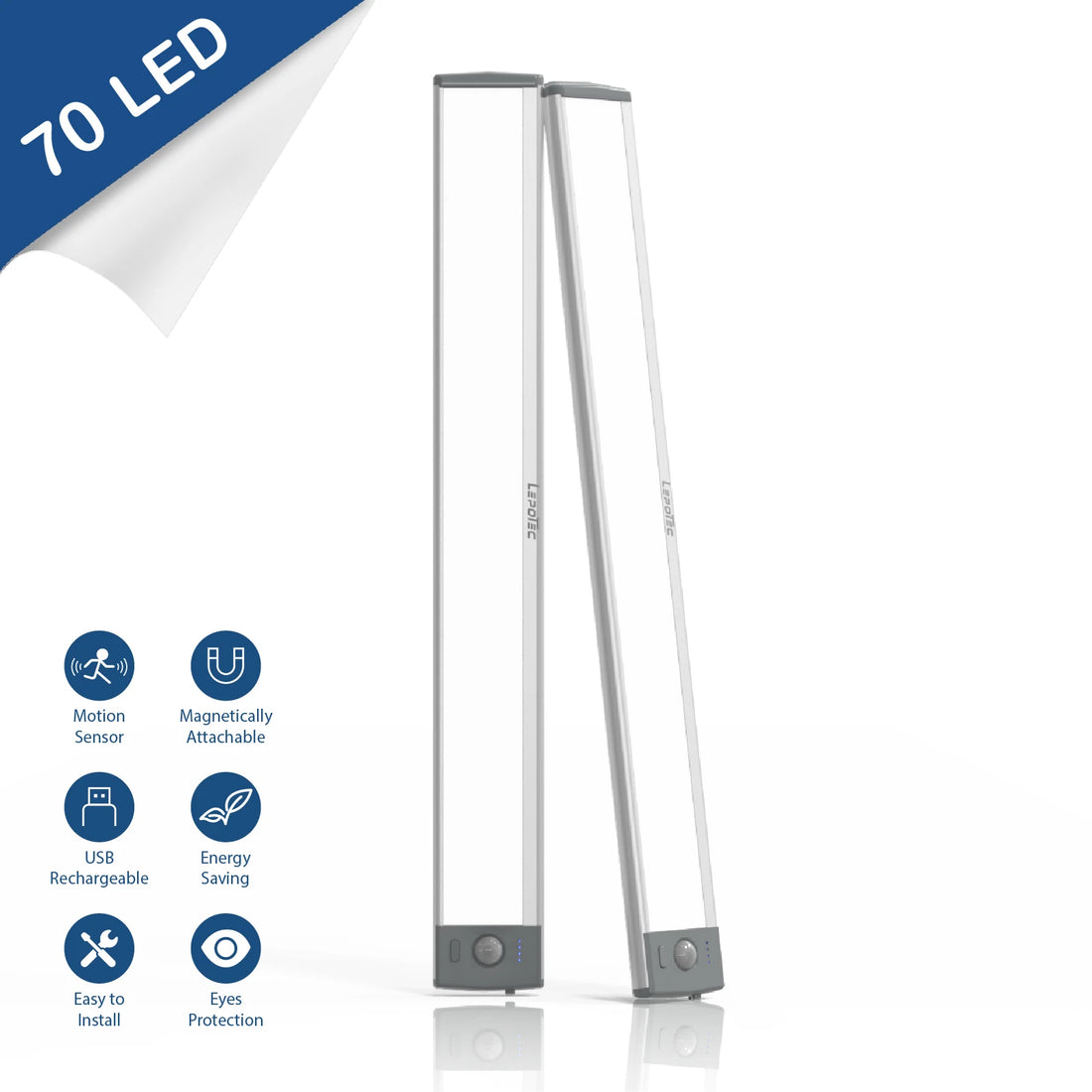 Under Cabinet Lighting – LEPOTEC 2pcs 54LED Magnetic Motion Sensor Lights, Rechargeable Cabinet & Wardrobe LED Light