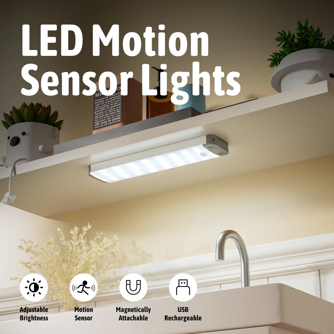 Under Cabinet Lighting – Lepotec Three-Color Dimming Motion Sensor Light, Magnetic USB Rechargeable for Kitchen, Bedroom, and More