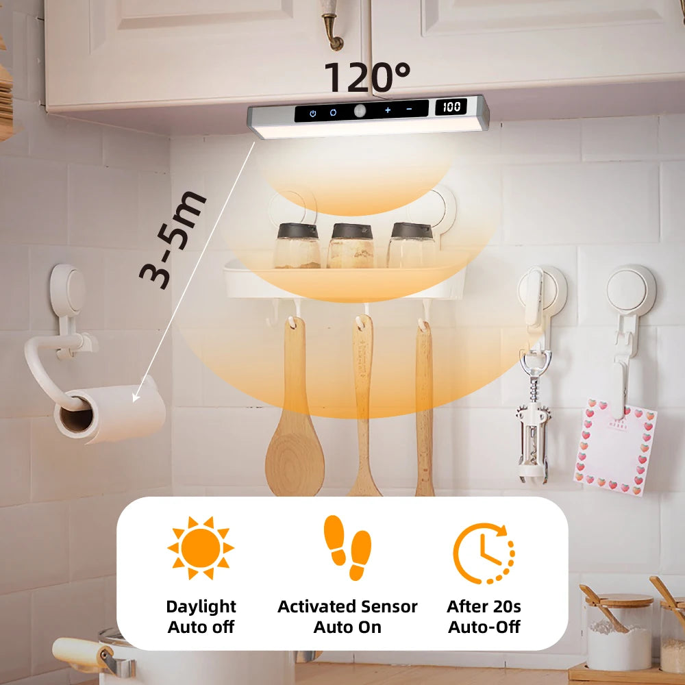 Under Cabinet Lighting – LEPOTEC Touch Control 3-Color Motion Sensor Light, Rechargeable Cabinet & Reading Light for Kitchen and Reading Rooms