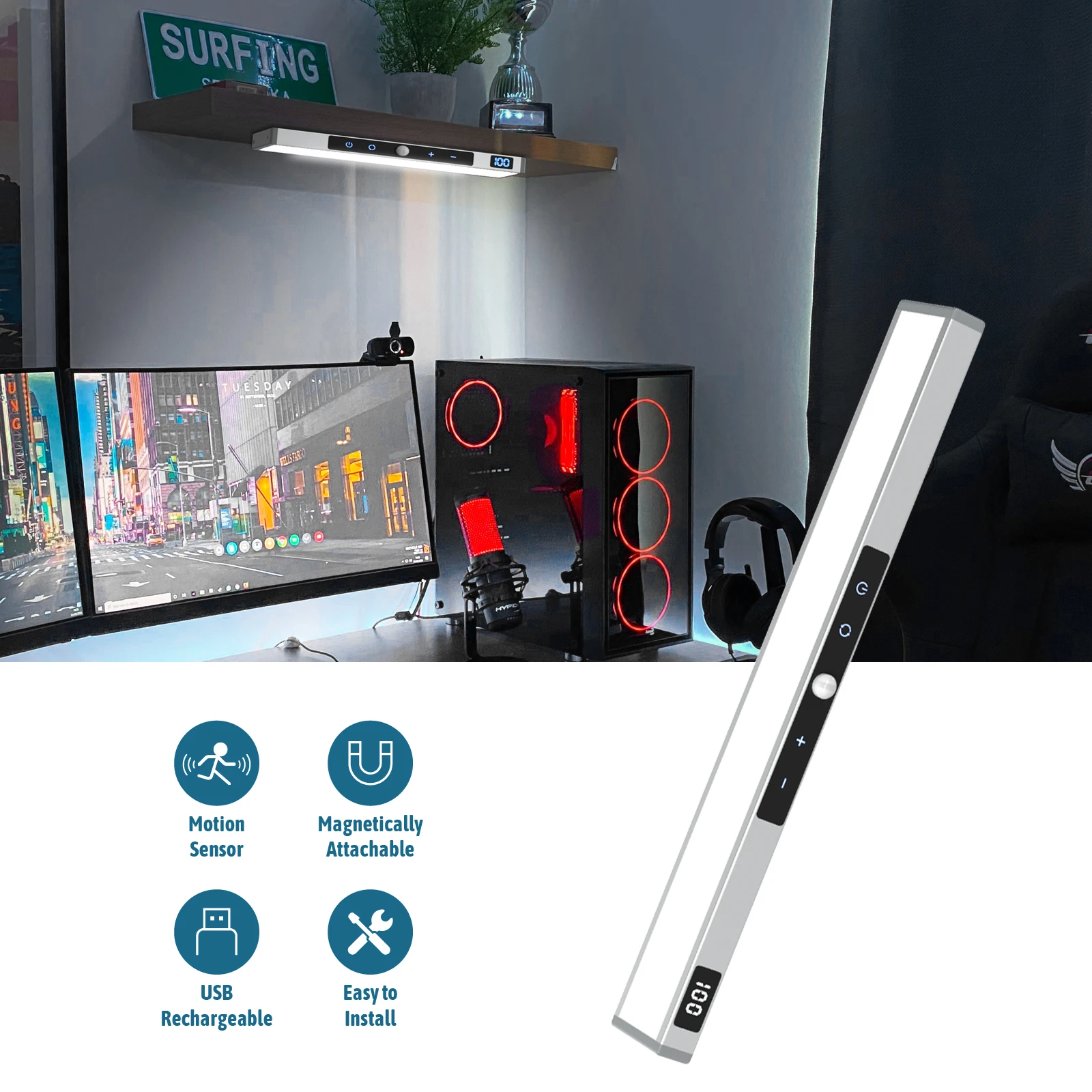 Illuminate your cabinets, desks, or wardrobes with this touch control reading light. Featuring motion sensor activation, magnetic installation, USB rechargeable battery, and three-tone dimming, it’s perfect for reading, working, or adding convenient lighting to your home or office.